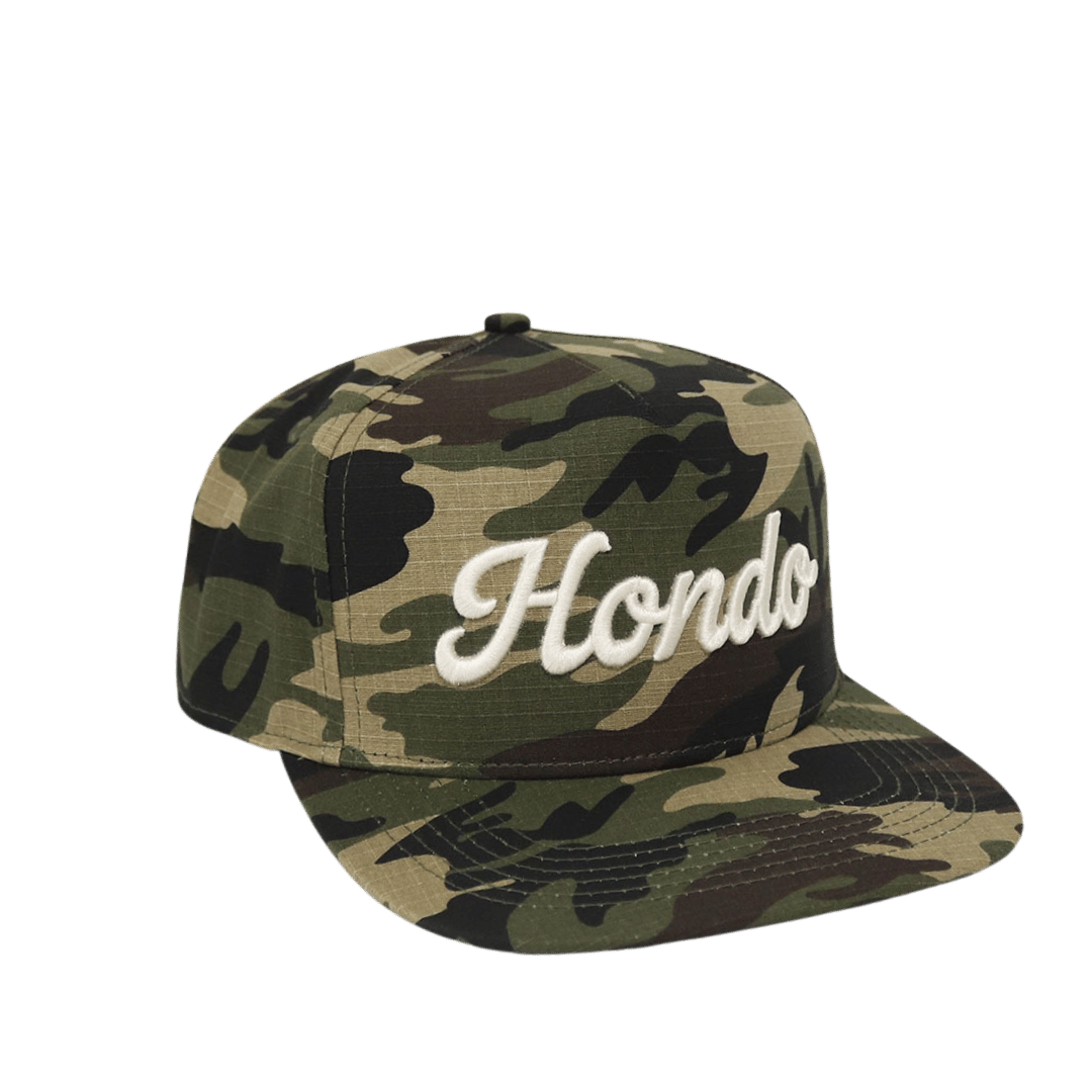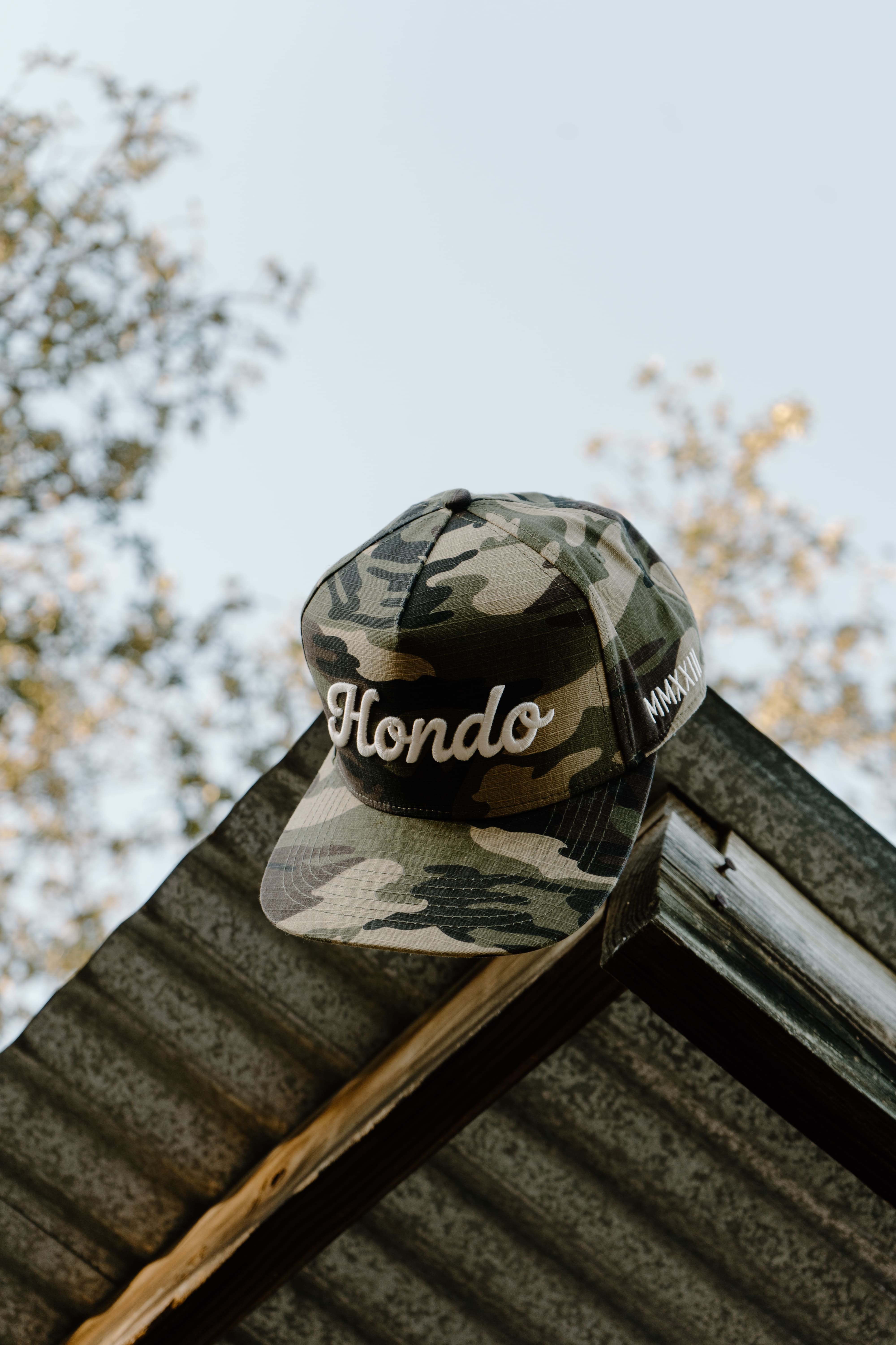 Introducing the "Vintage Camo" — a throwback to the golden age of the outdoors. Made from lightweight ripstop material, this hat is built for durability, breathability, and all-day comfort. Its classic camo pattern brings that old-school look back to life, paired with bold puff embroidery that proudly spells Hondo across the front. Rugged yet refined, The Vintage Camo is made for mornings in the field, evenings by the fire, and everywhere in between.