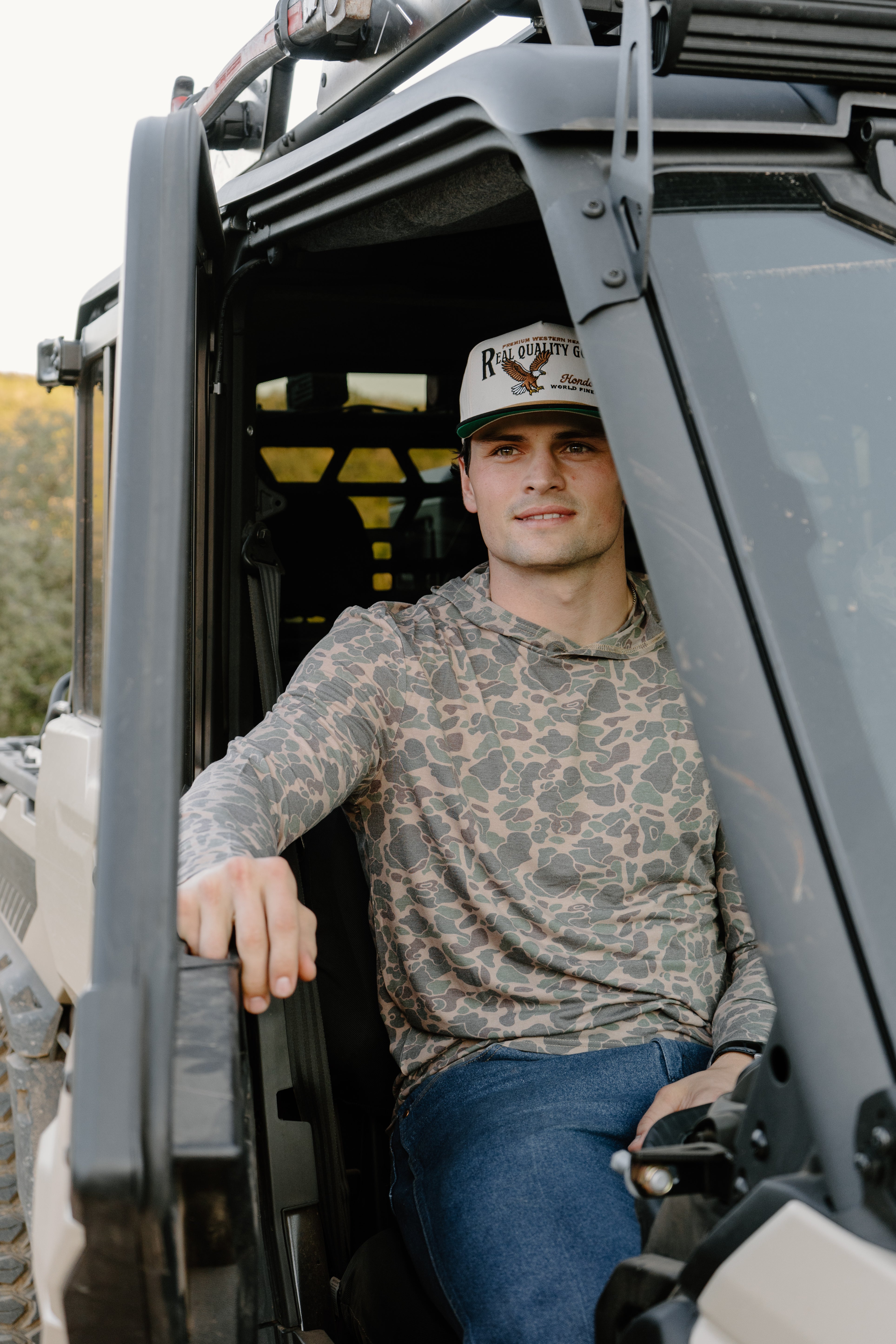 Introducing the "Tech Hoodie" – where performance meets vintage grit. We made this to be lightweight and comfortable in any layer or any situation. Y'all loved the short sleeve so much, we decided to make a hoodie version! This buttery soft, true-to-size shirt features an athletic cut for a flattering fit and all-day comfort. Crafted with a new breathable moisture-wicking fabric, it's built for the heat of the field, the gym, or wherever the day takes you. The vintage-inspired Brush Camo pattern gives it an old-school feel with modern functionality — a perfect fusion of style and utility.