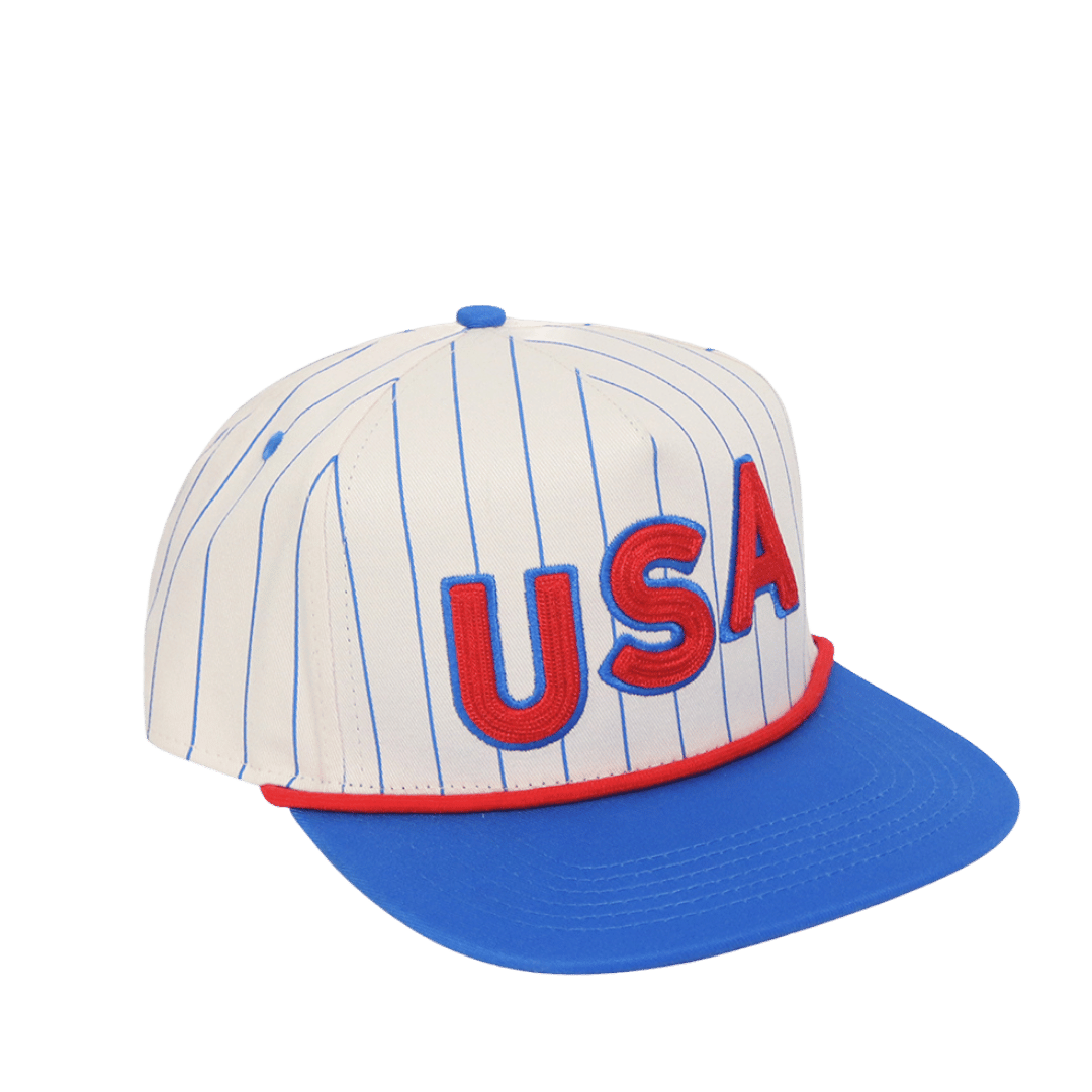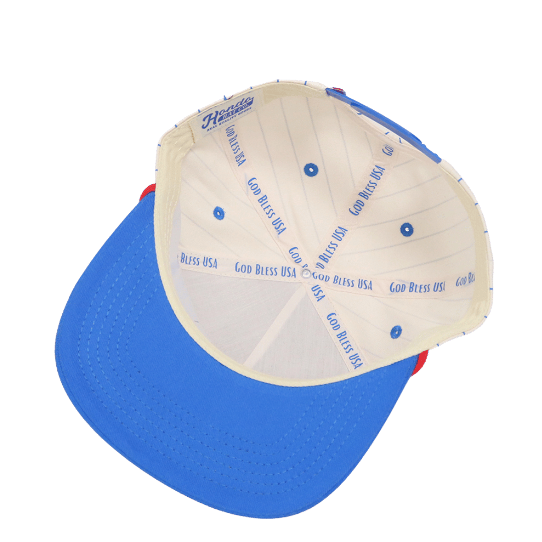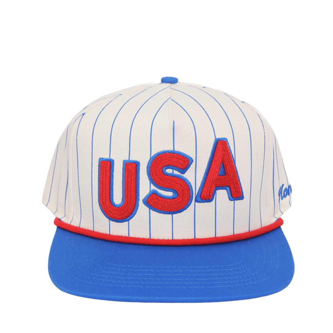 Introducing the "USA" — a bold salute to craftsmanship and classic style. Featuring sharp blue pinstripes, a blue brim, and a vibrant red rope, this hat captures the timeless spirit of the stars and stripes with a vintage twist. The chain-stitched USA embroidery jumps off the crown with rich texture and detail, giving this piece a look that’s as proud as it is refined. Built with unmatched quality and Hondo’s signature attention to detail, The USA is more than a hat — it’s a statement of heritage and hard work.